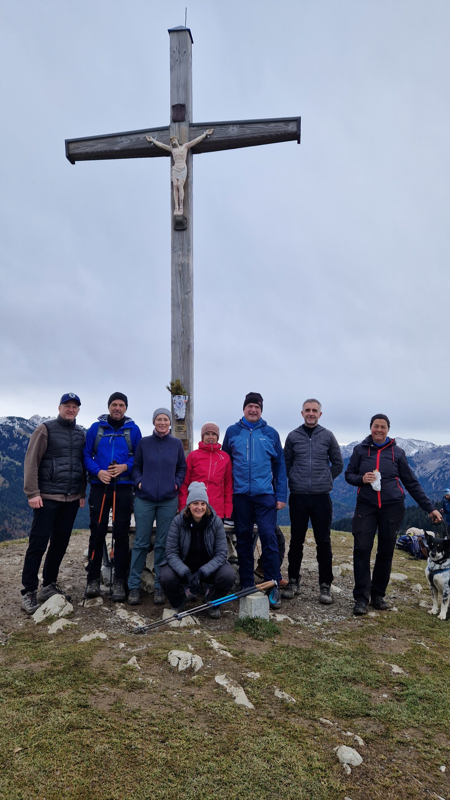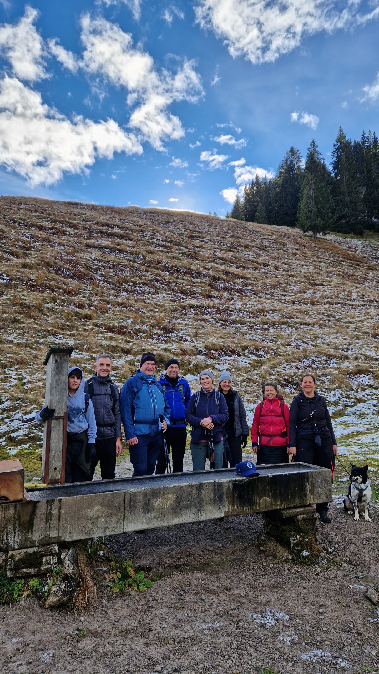 Am frühen Morgen trafen sich neun Teilnehmer und ein Hund zur gemeinsamen Herbst-Wanderung des SV Dornach. Die Anfahrt erfolgte unkompliziert und gesellig mit dem vereinseigenen Minibus bis zum Spitzingsee. Von dort begann unsere sehr abwechslungsreiche Tour, die uns über tolle Wege und durch herbstliche Berglandschaften auf zwei Gipfel führte.